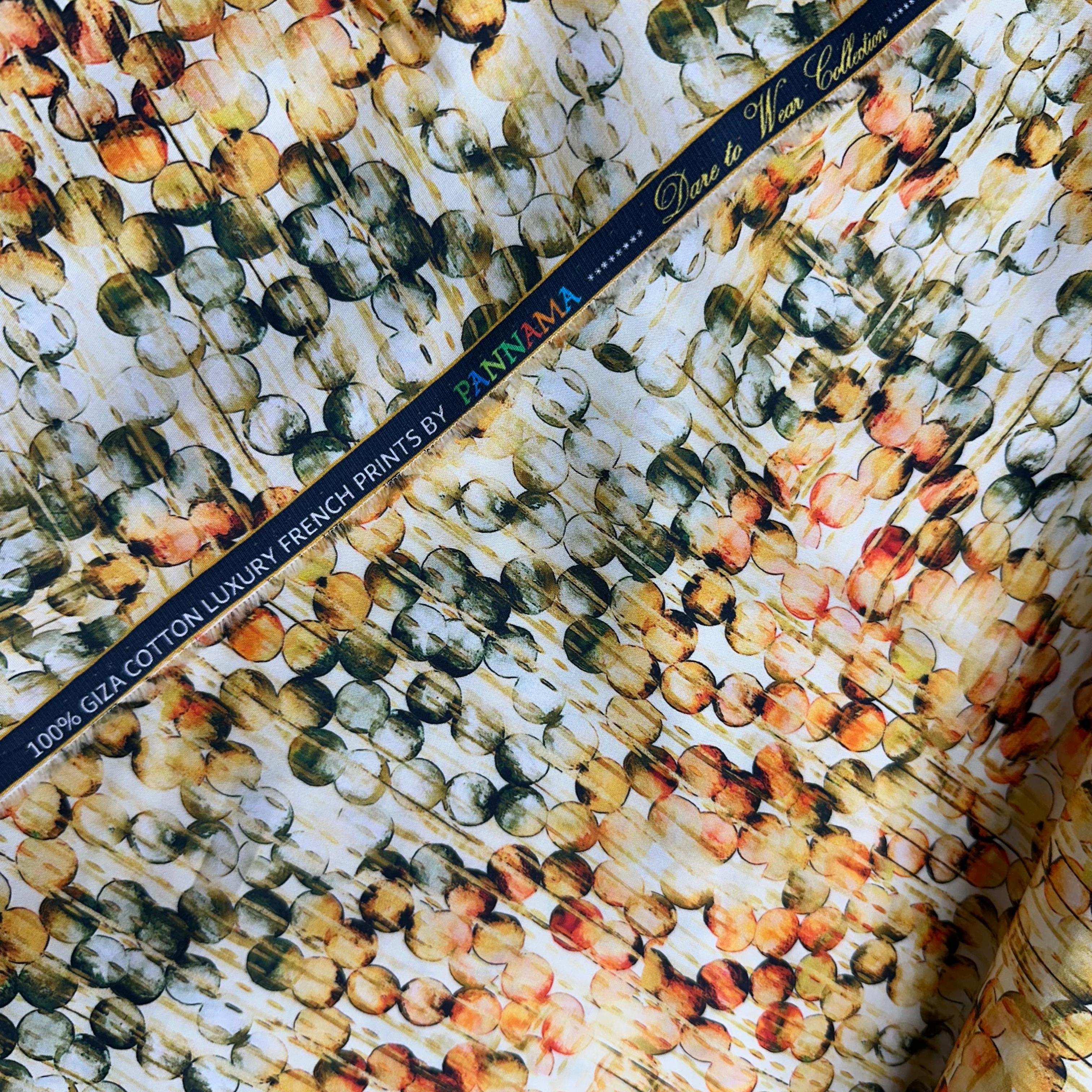 PANNAMA 100% COTTON DIGITAL PRINT SHIRT & KURTA UNSTITCHED FABRIC (ORANGE)