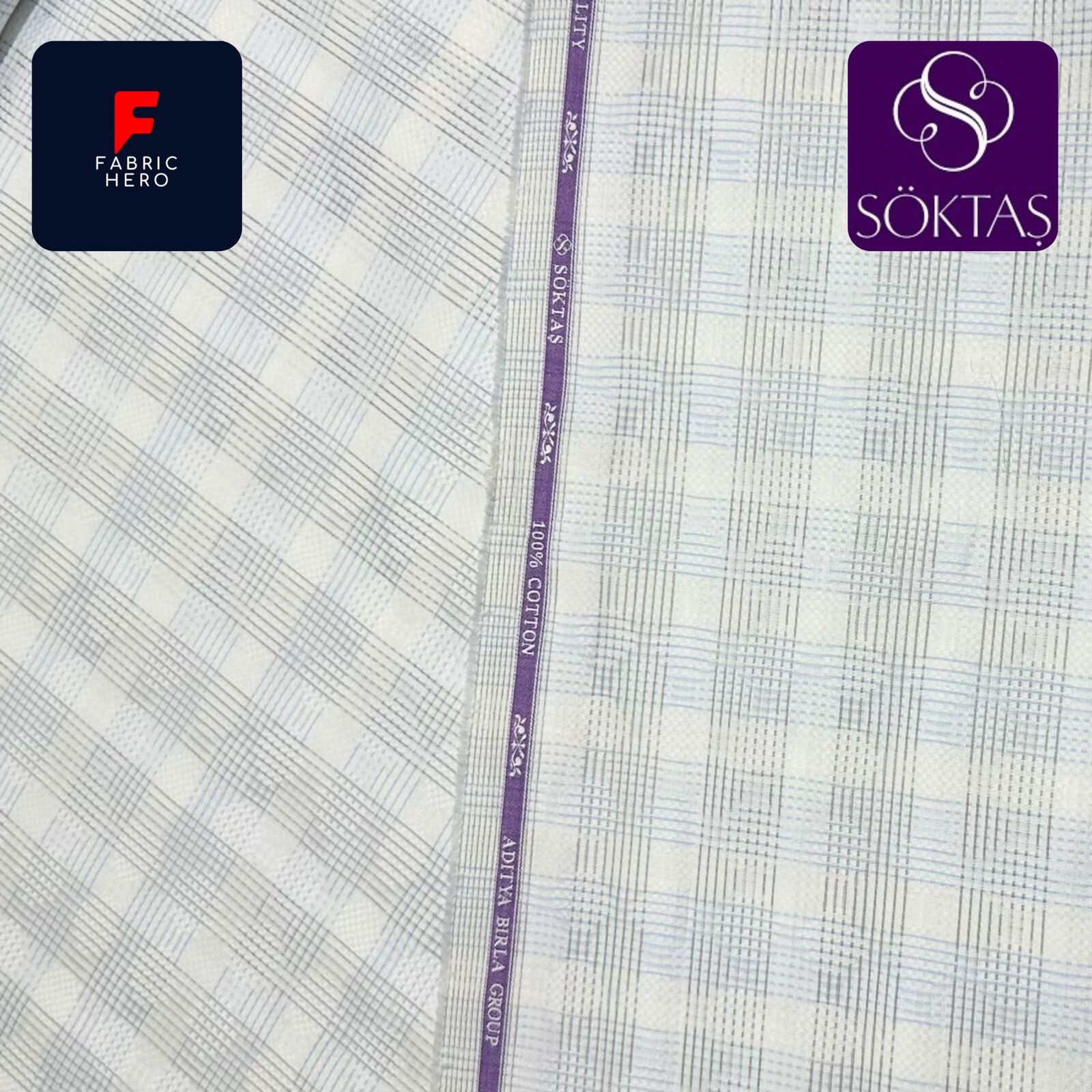 SOKTAS 100% GIZA COTTON CHECKS SHIRT UNSTITCHED FABRIC (BLUE) S5735