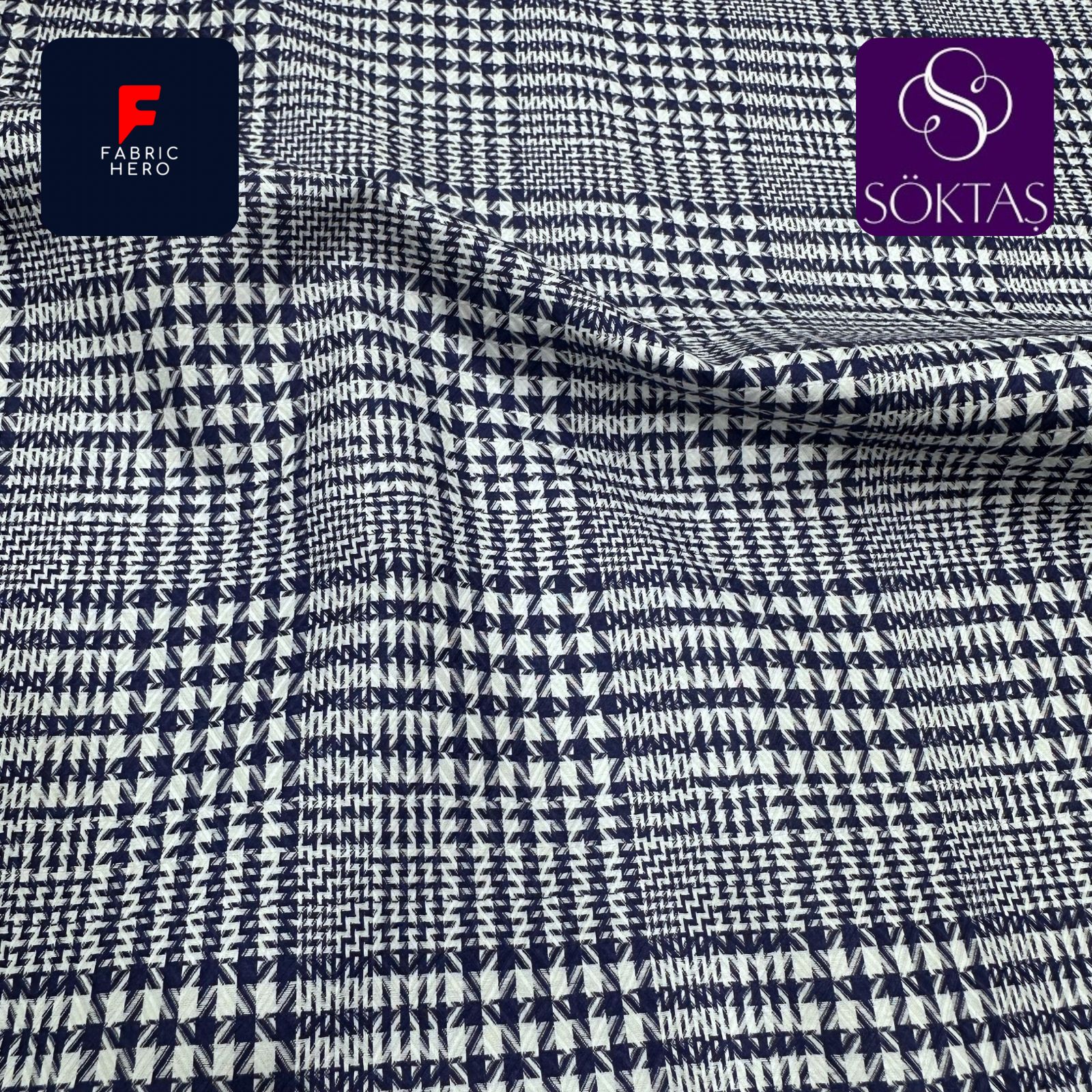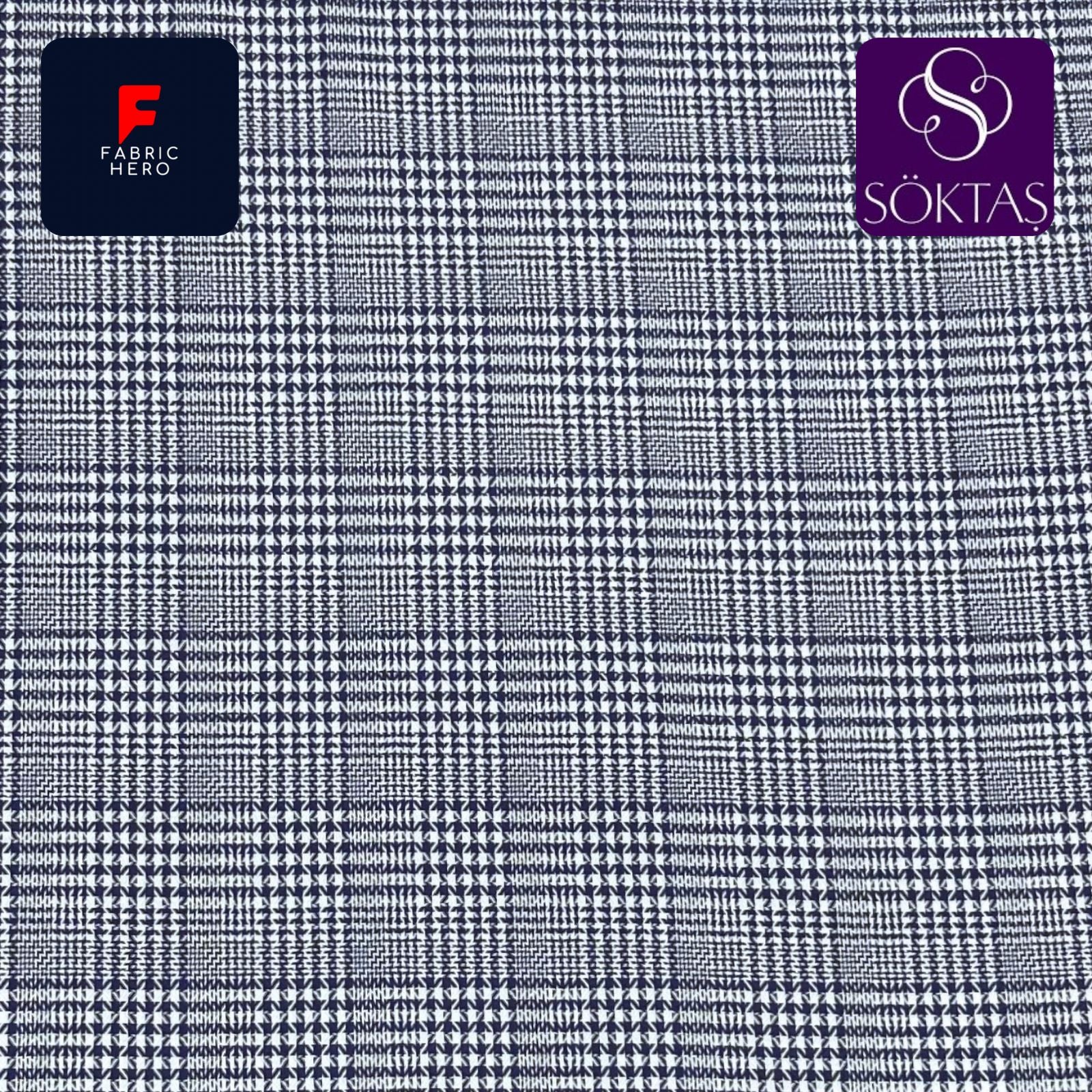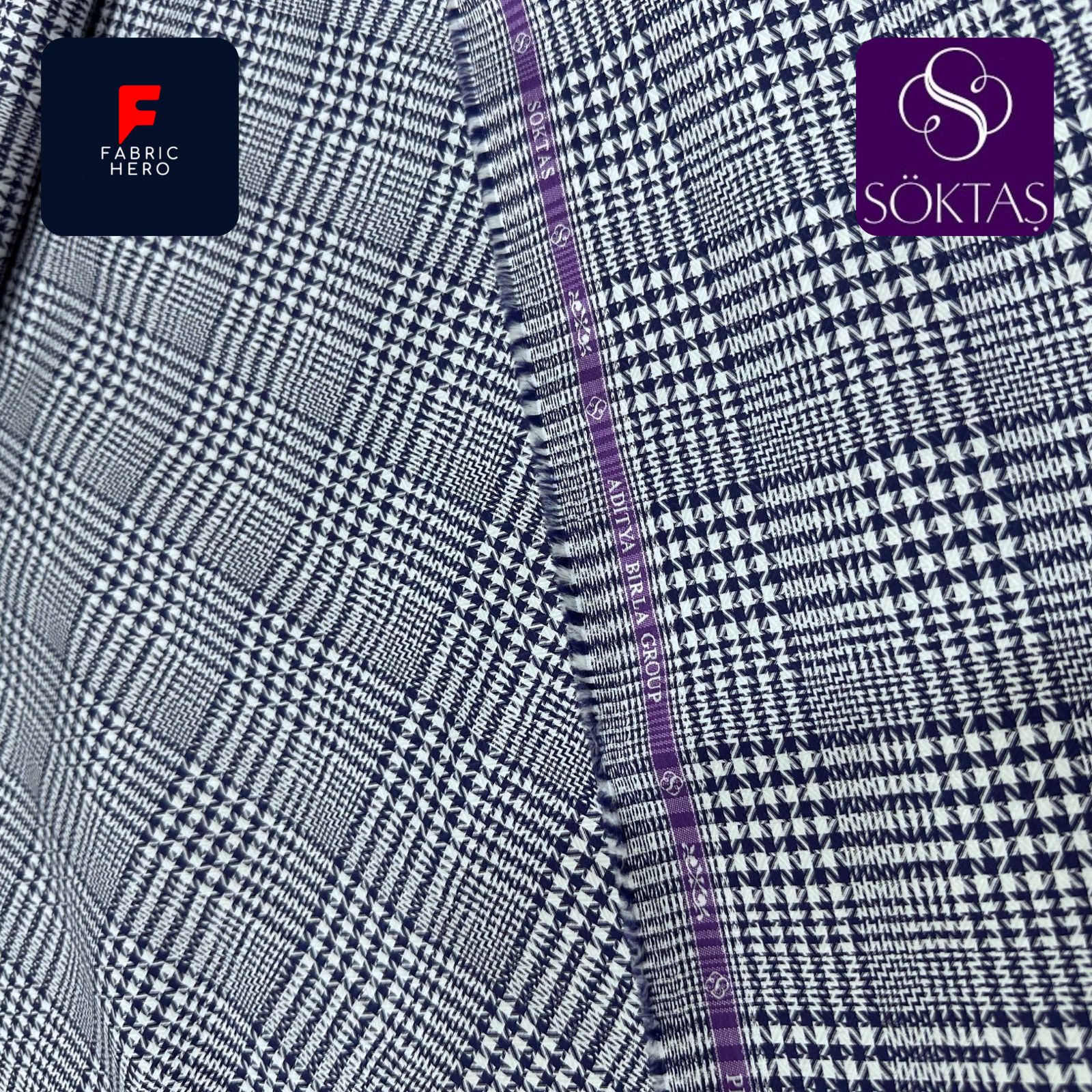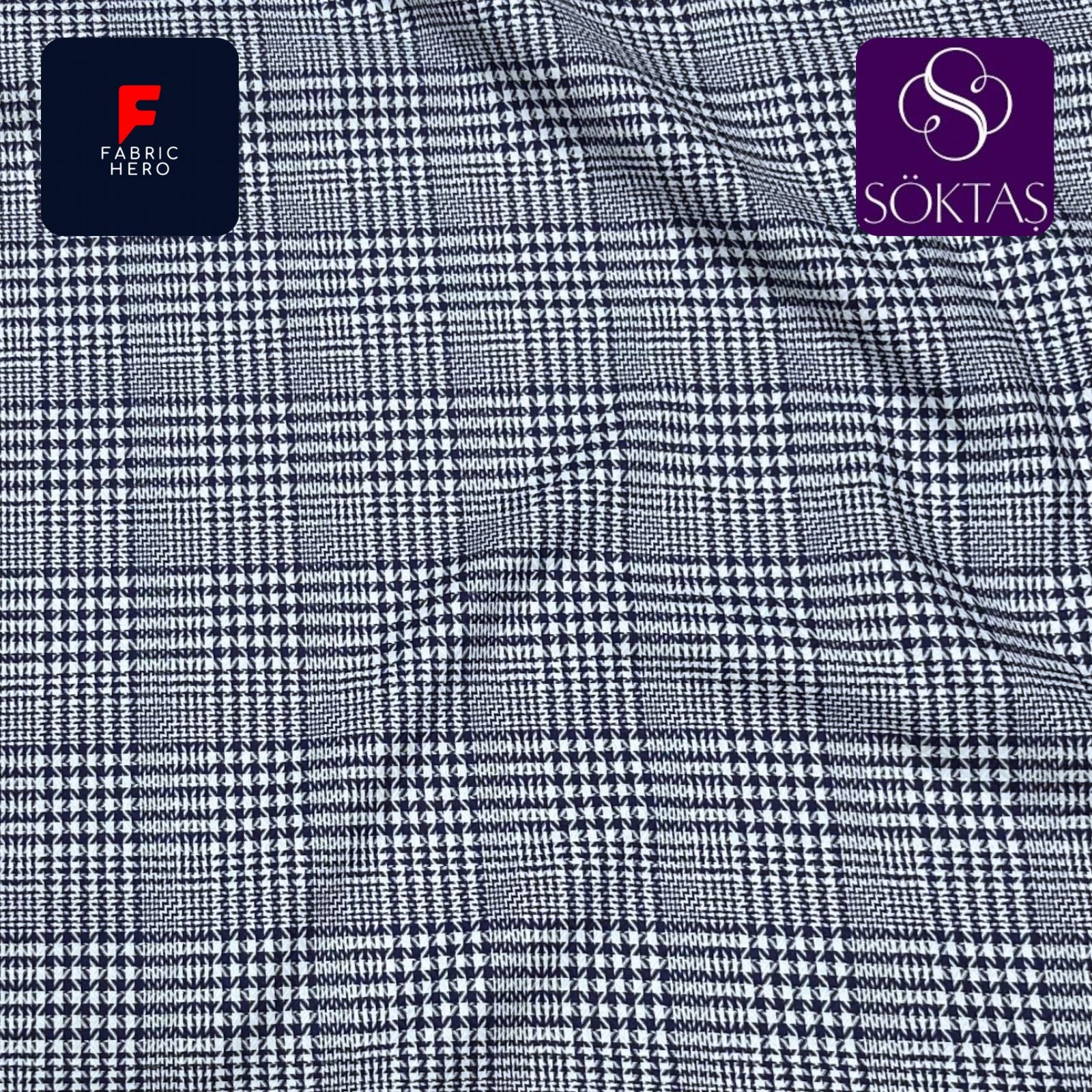 SOKTAS 100% GIZA COTTON CHECKS SHIRT UNSTITCHED FABRIC (NAVY) S5497