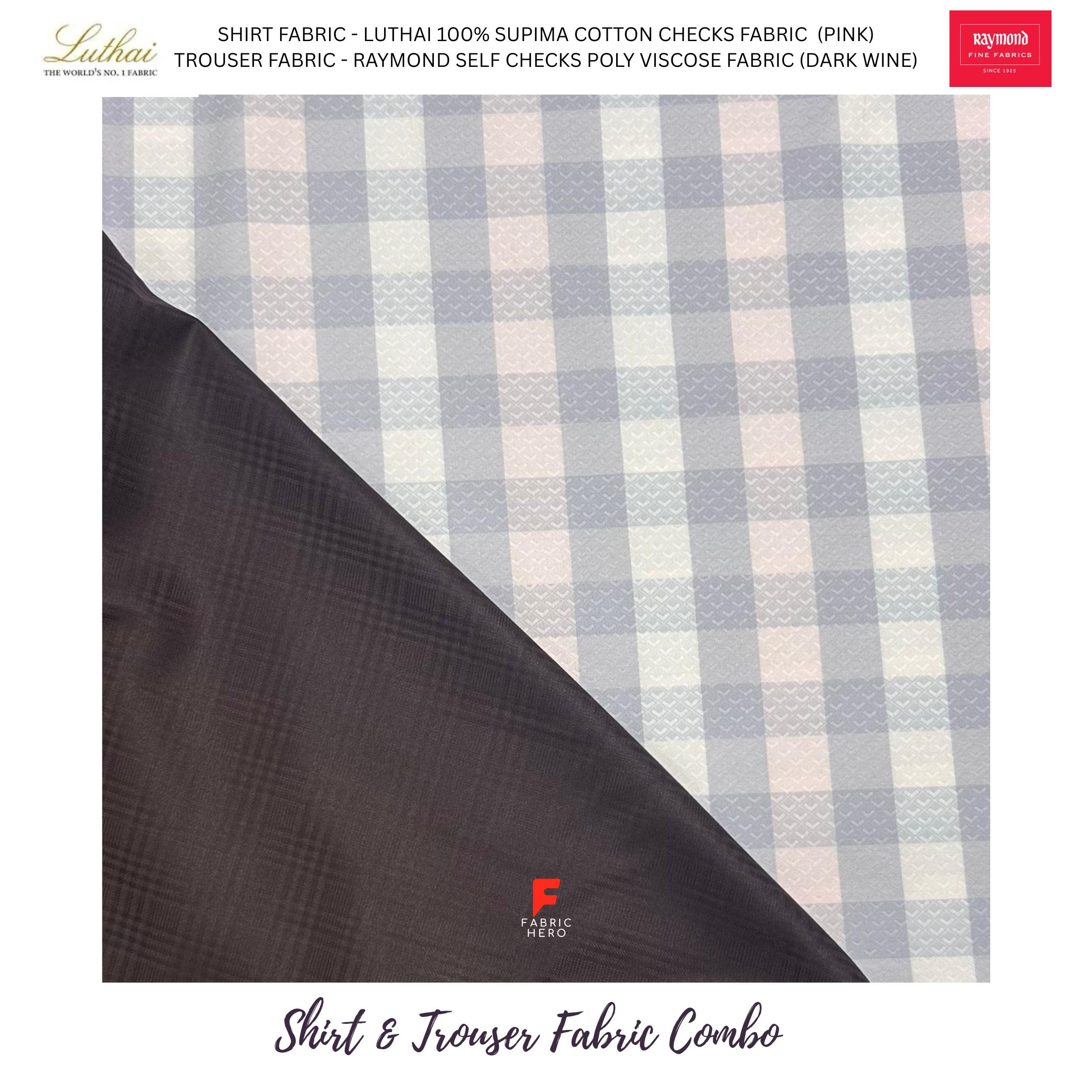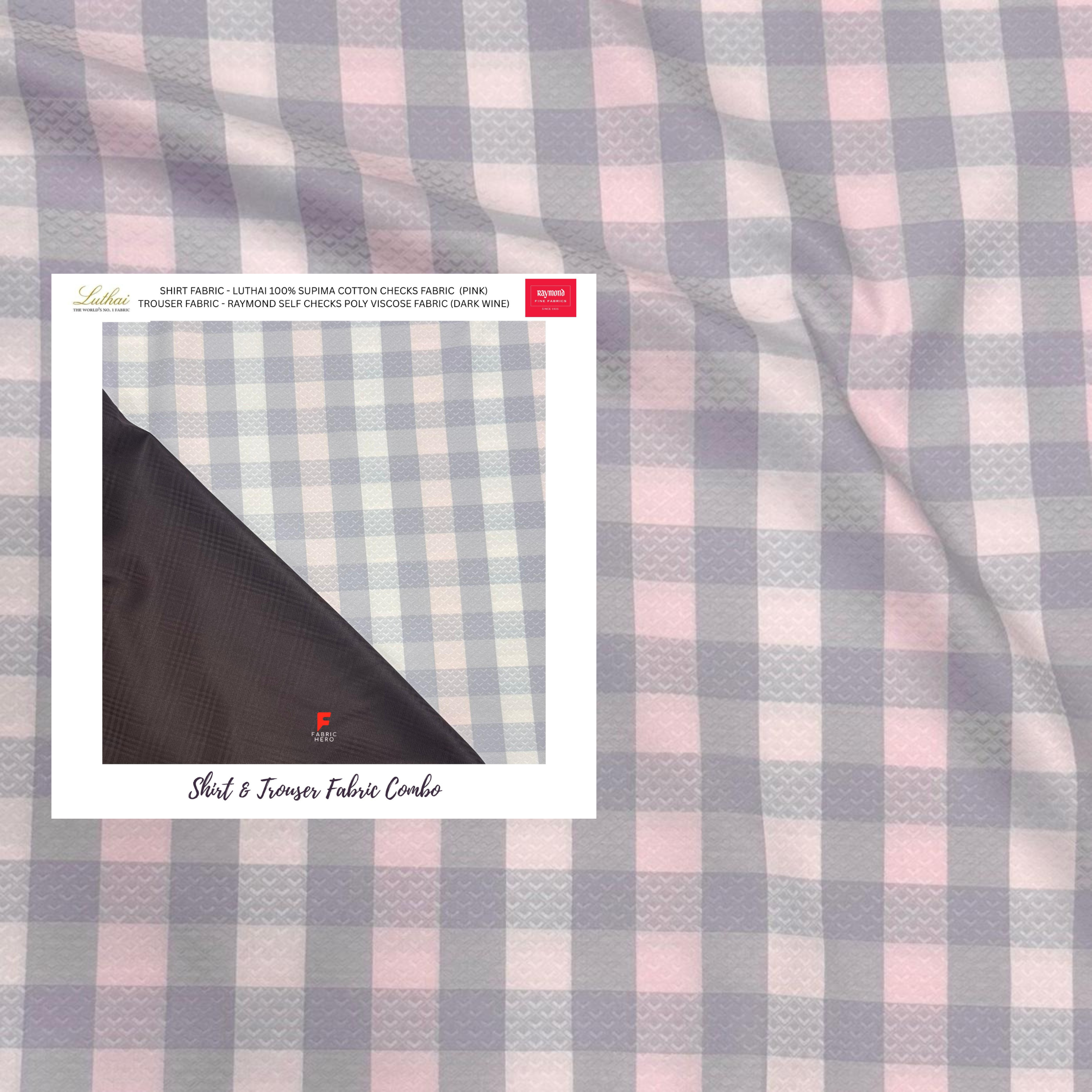 SHIRT FABRIC - LUTHAI 100% SUPIMA COTTON CHECKS PINK UNSTITCHED FABRIC (L4916)  : 1.70 Mtr