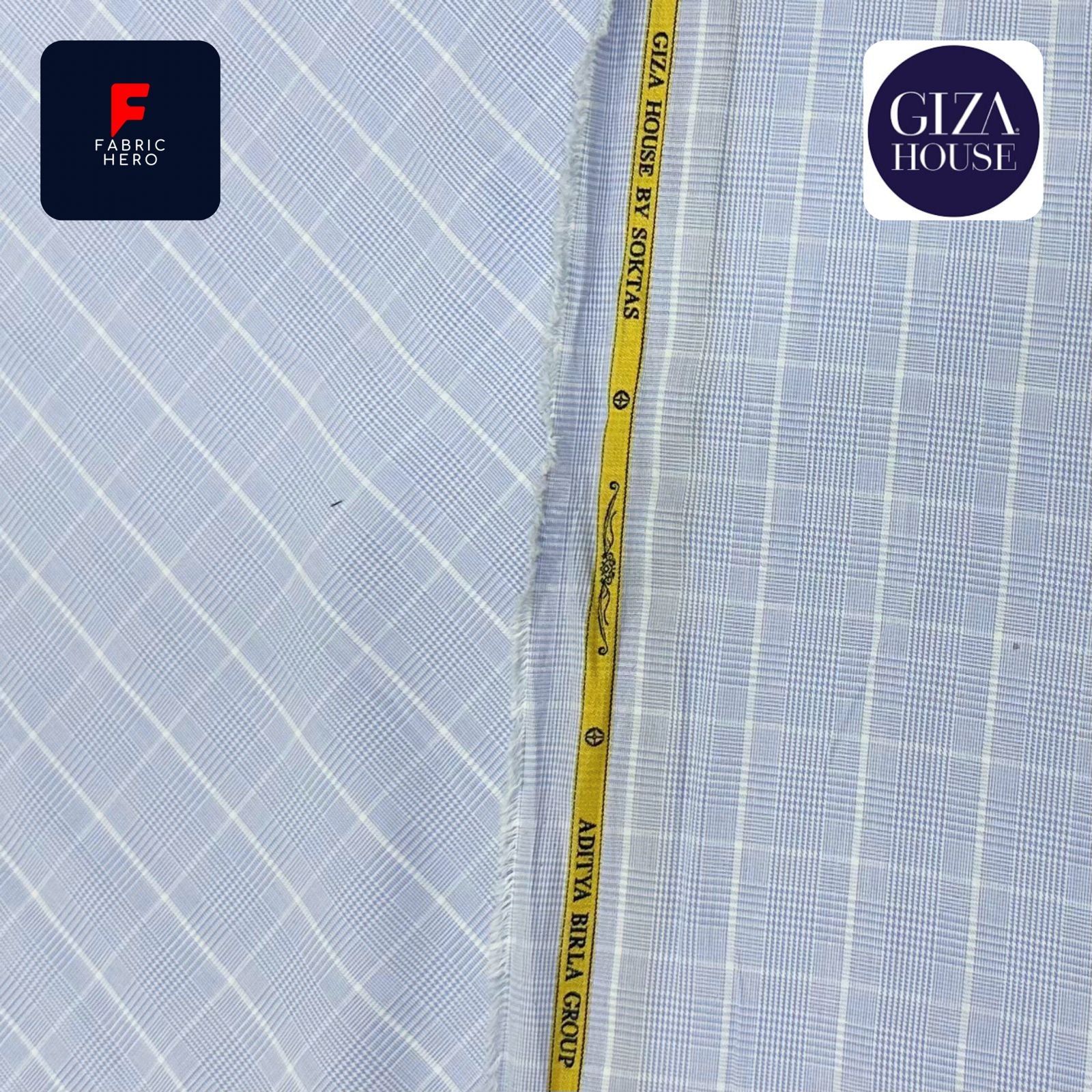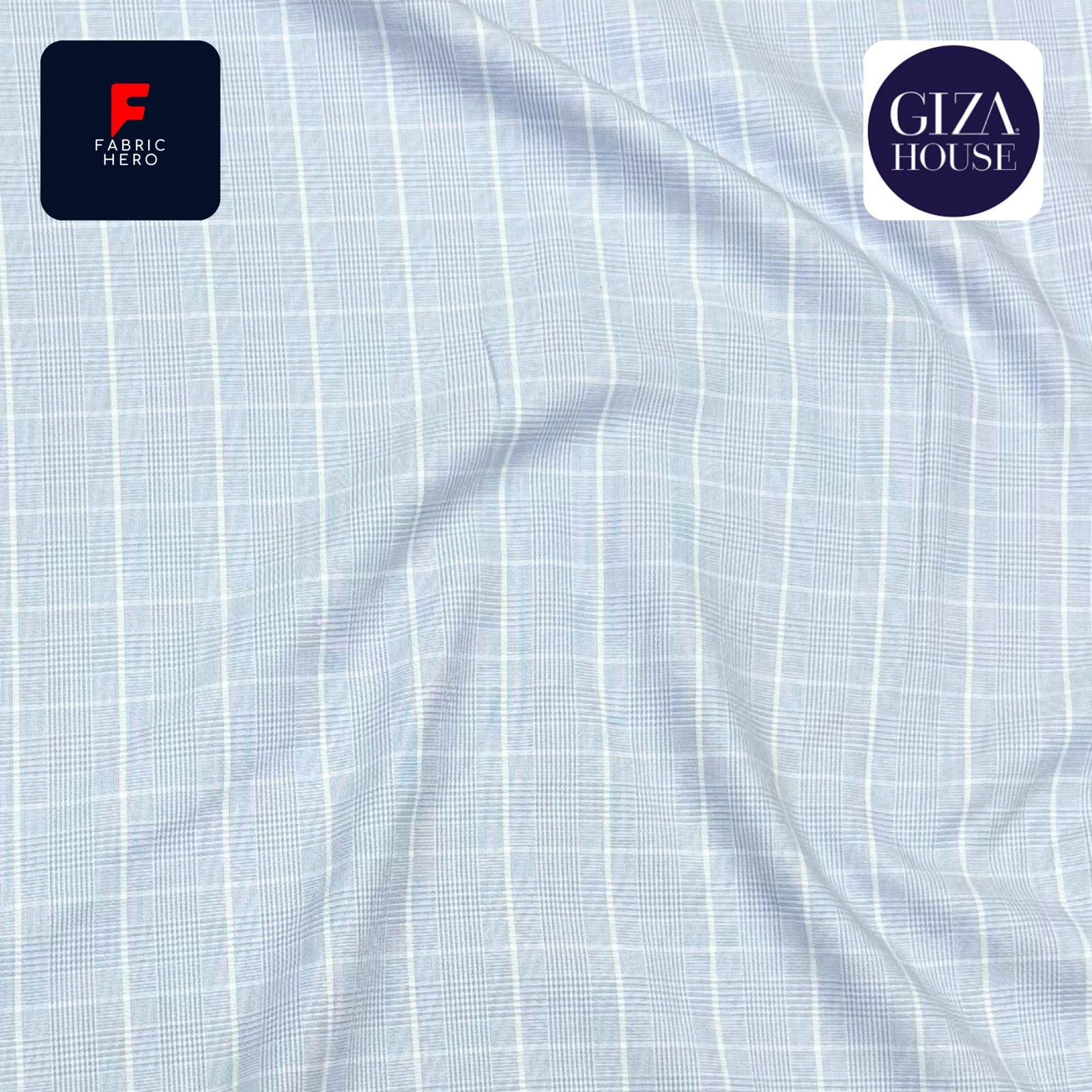 GIZA HOUSE 100% GIZA COTTON WITH TENCEL CHECKS SHIRT UNSTITCHED FABRIC (SKY BLUE) GH5526