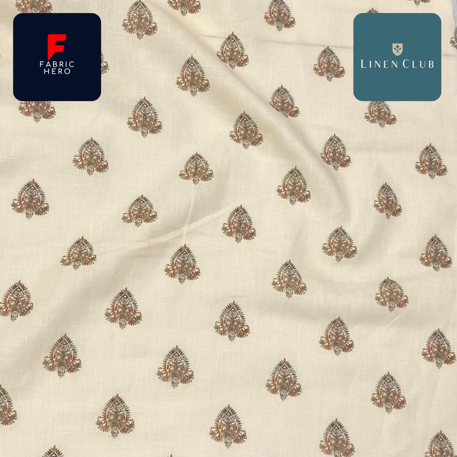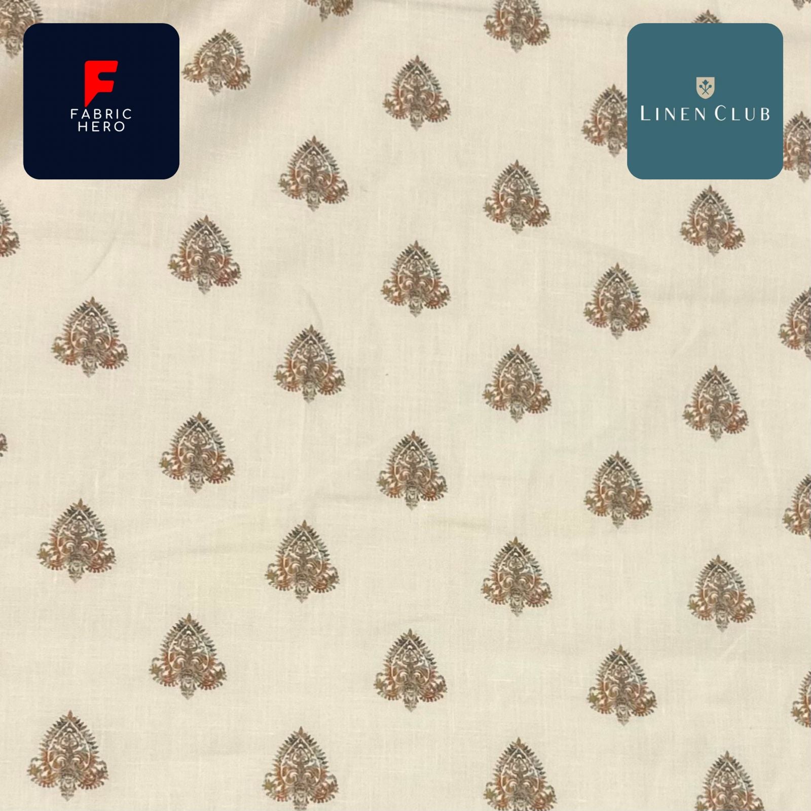 LINEN CLUB LINEN-COTTON PRINT SHIRT AND KURTA UNSTITCHED FABRIC (BUTTER YELLOW) LC5502