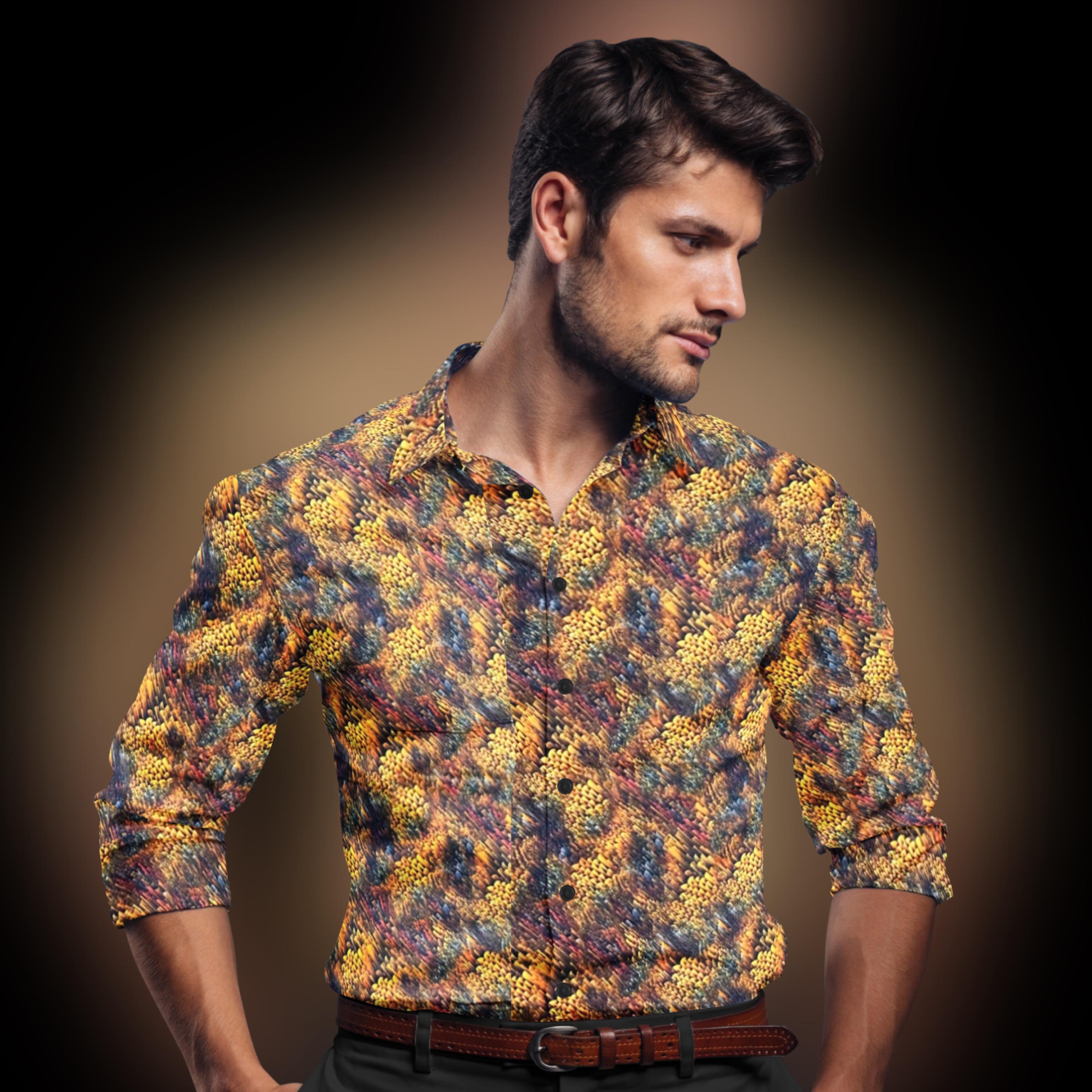 PANNAMA 100% COTTON DIGITAL PRINT SHIRT & KURTA UNSTITCHED FABRIC (MUSTARD)