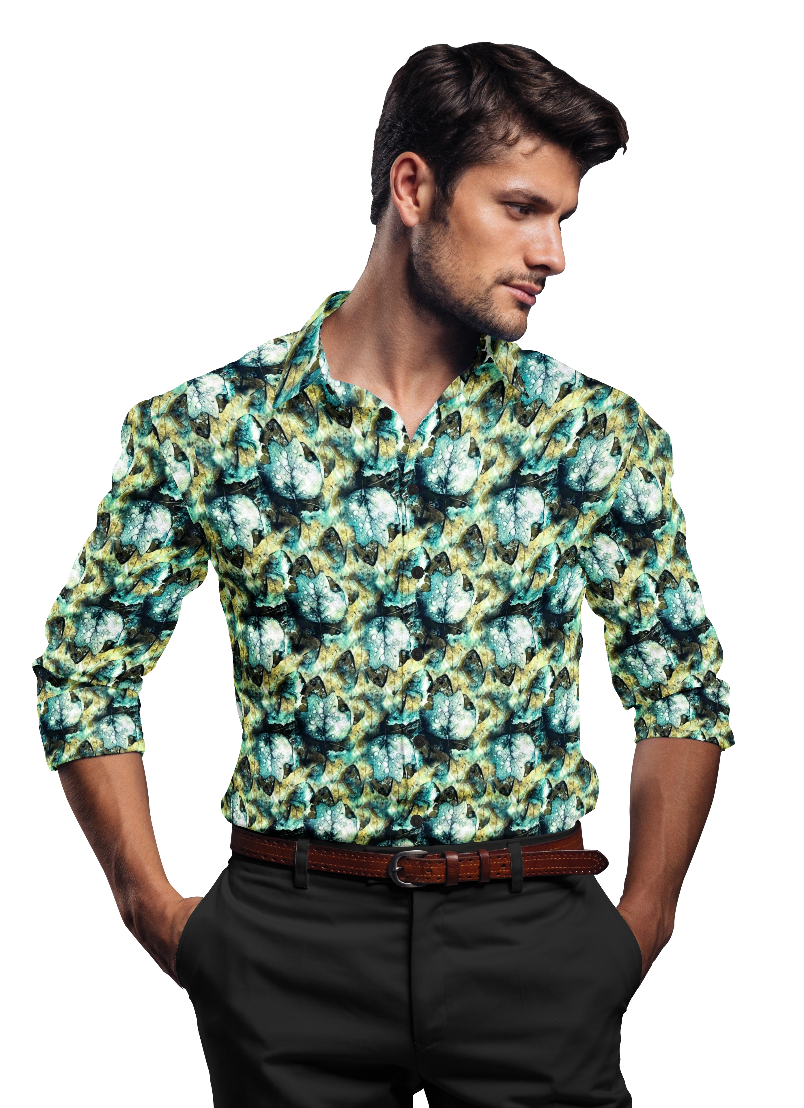 PANNAMA MEN'S COTTON PRINTED SHIRT & KURTA UNSTITCHED FABRIC (GREEN) P4102