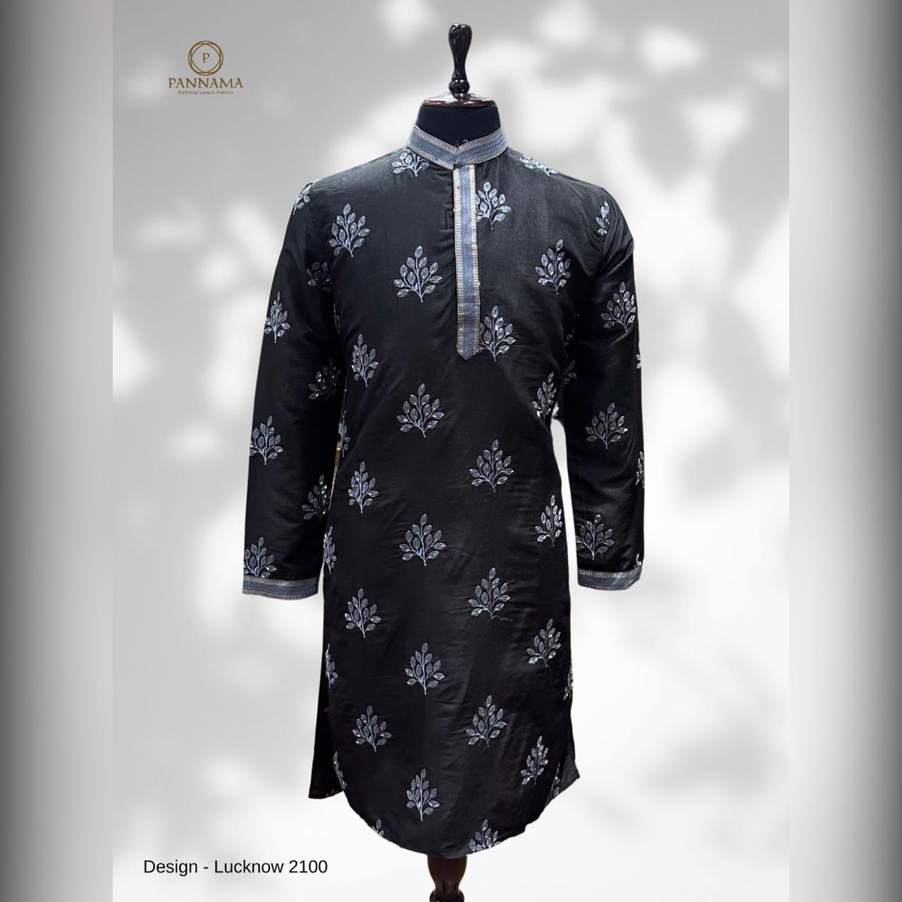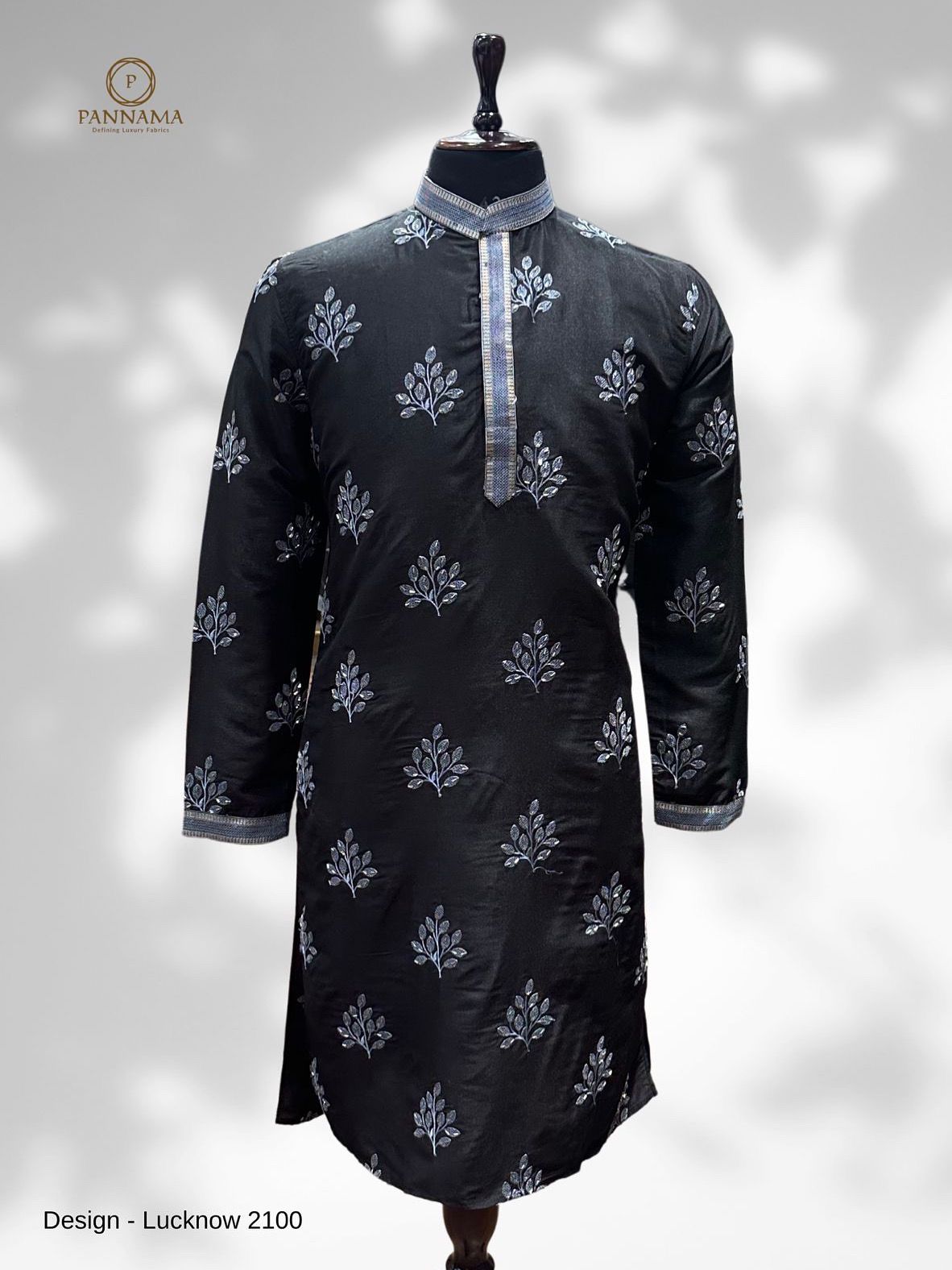 PANNAMA MEN'S MICROFIBRE EMBROIRED KURTA UNSTITCHED FABRIC (BLACK) WH359
