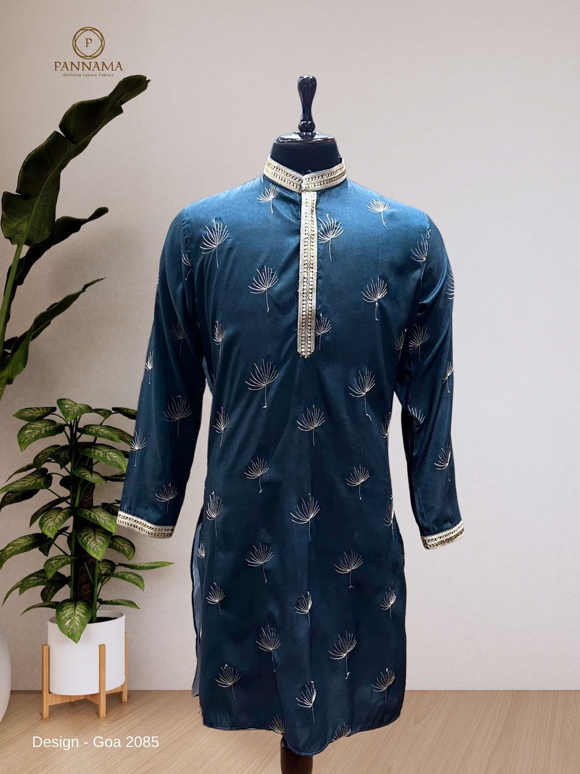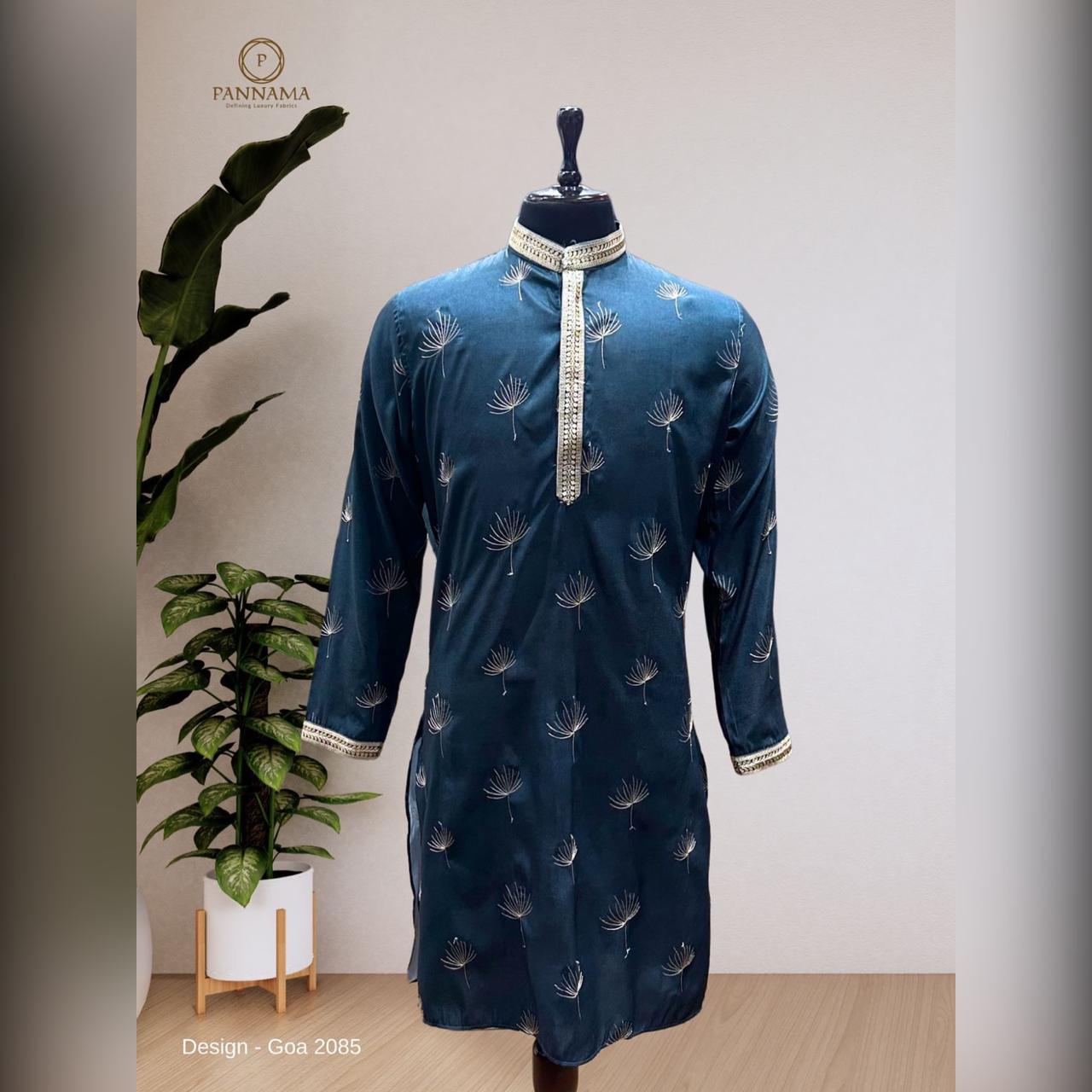 PANNAMA MEN'S MICROFIBRE EMBROIRED KURTA UNSTITCHED FABRIC (BLUE) WH351