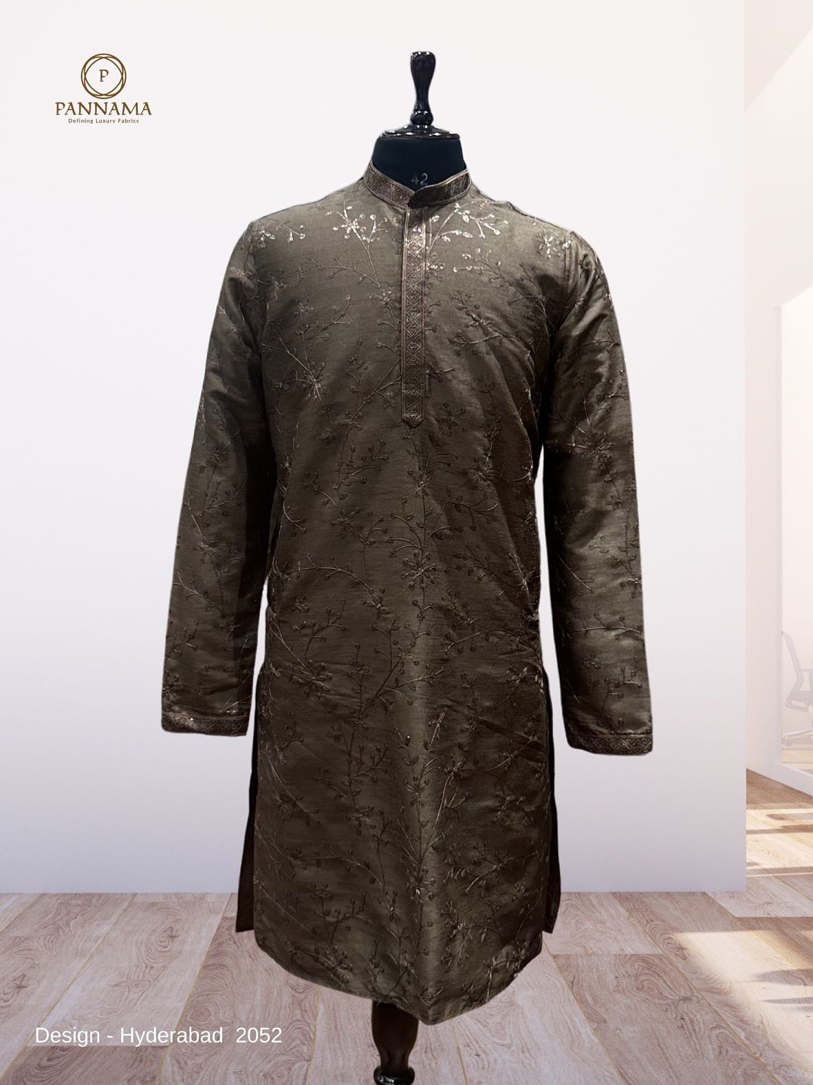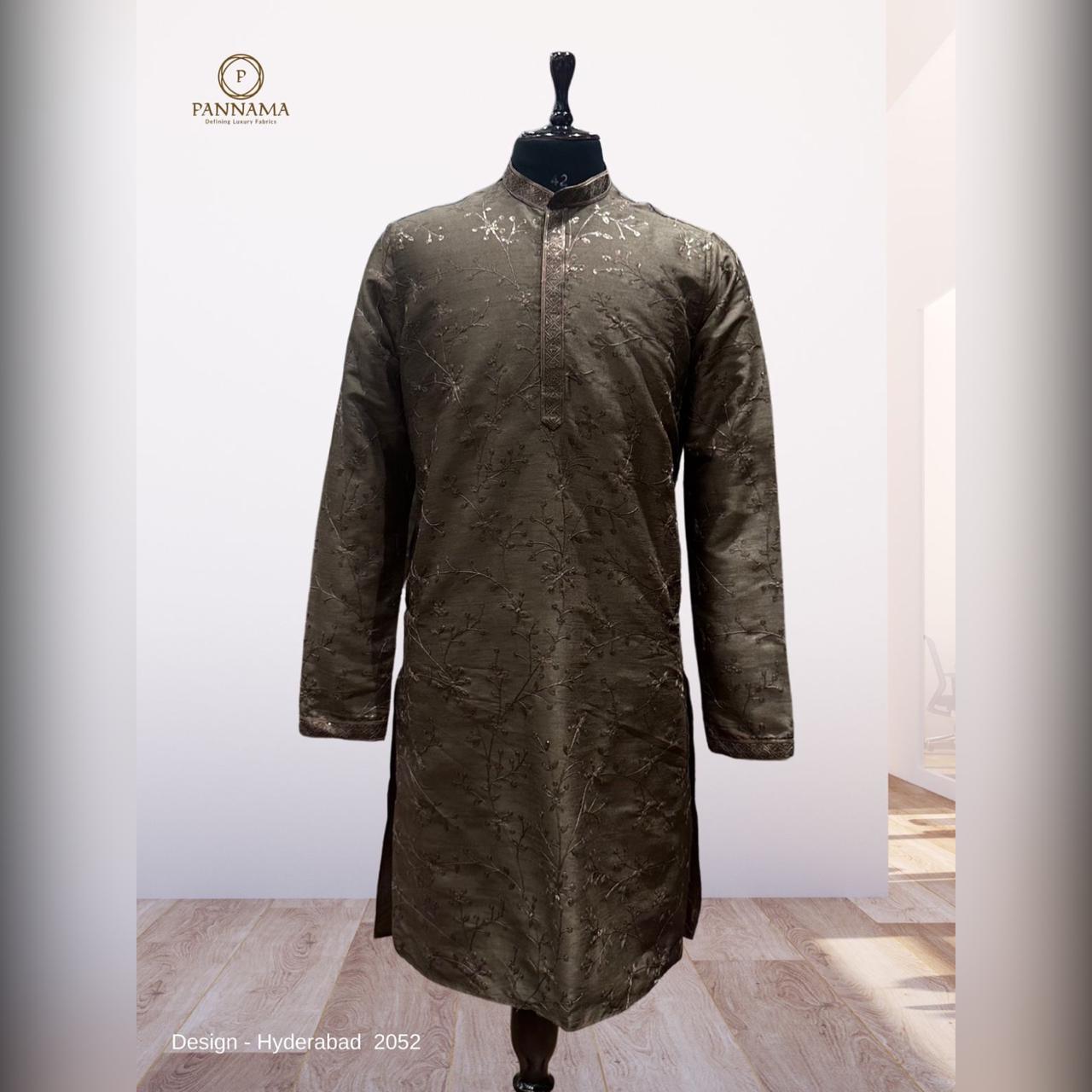 PANNAMA MEN'S MICROFIBRE EMBROIRED KURTA UNSTITCHED FABRIC (BROWN) WH354