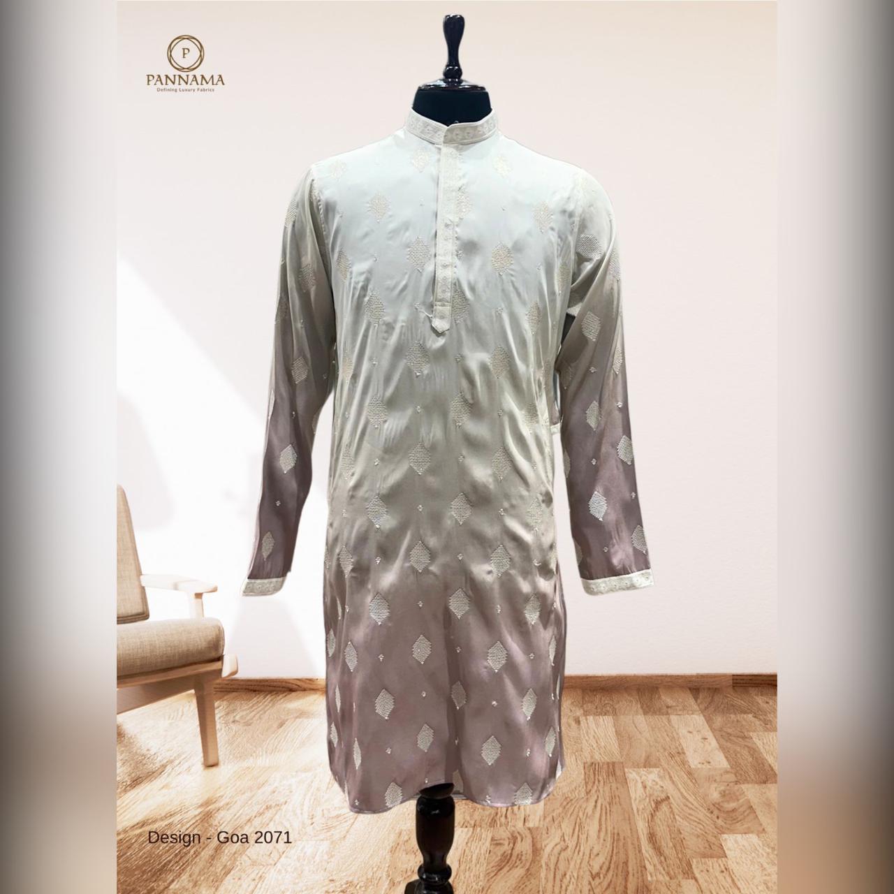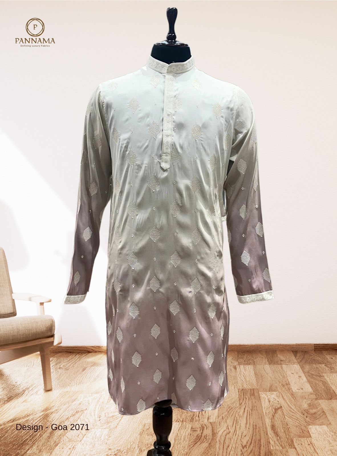 PANNAMA MEN'S MICROFIBRE EMBROIRED KURTA UNSTITCHED FABRIC (BROWN) WH376