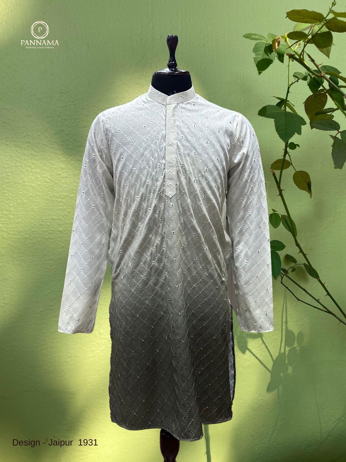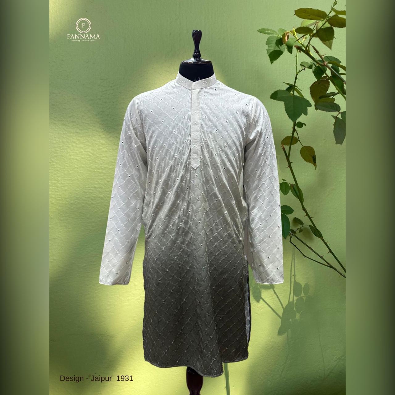 PANNAMA MEN'S MICROFIBRE EMBROIRED KURTA UNSTITCHED FABRIC (GREEN) WH353