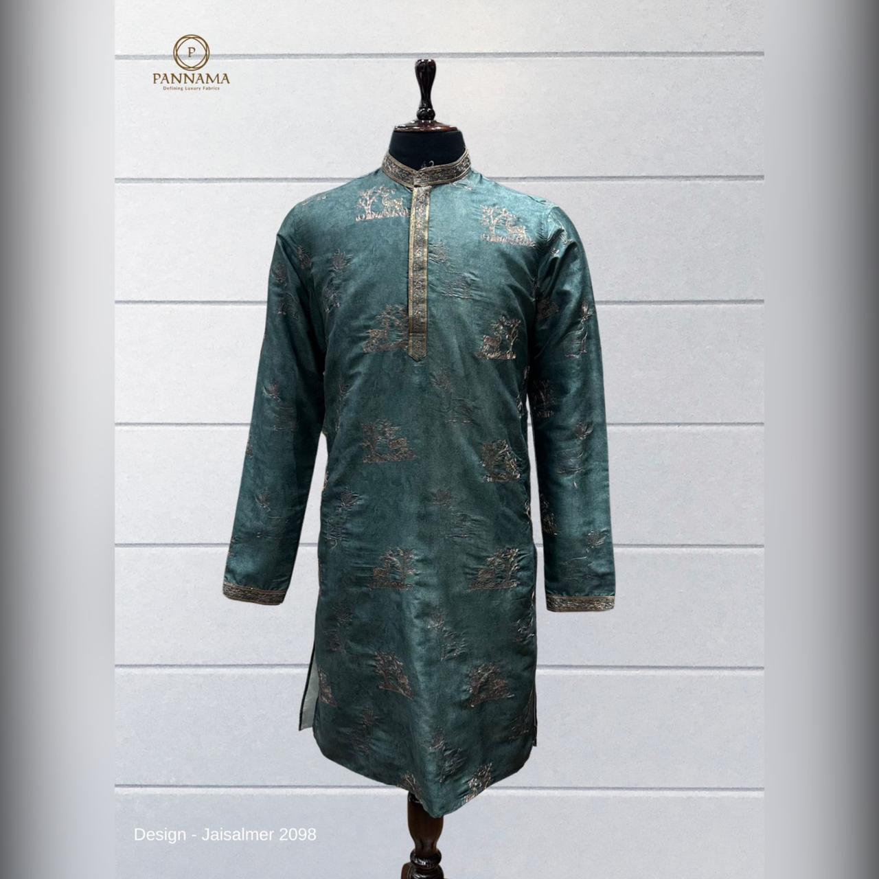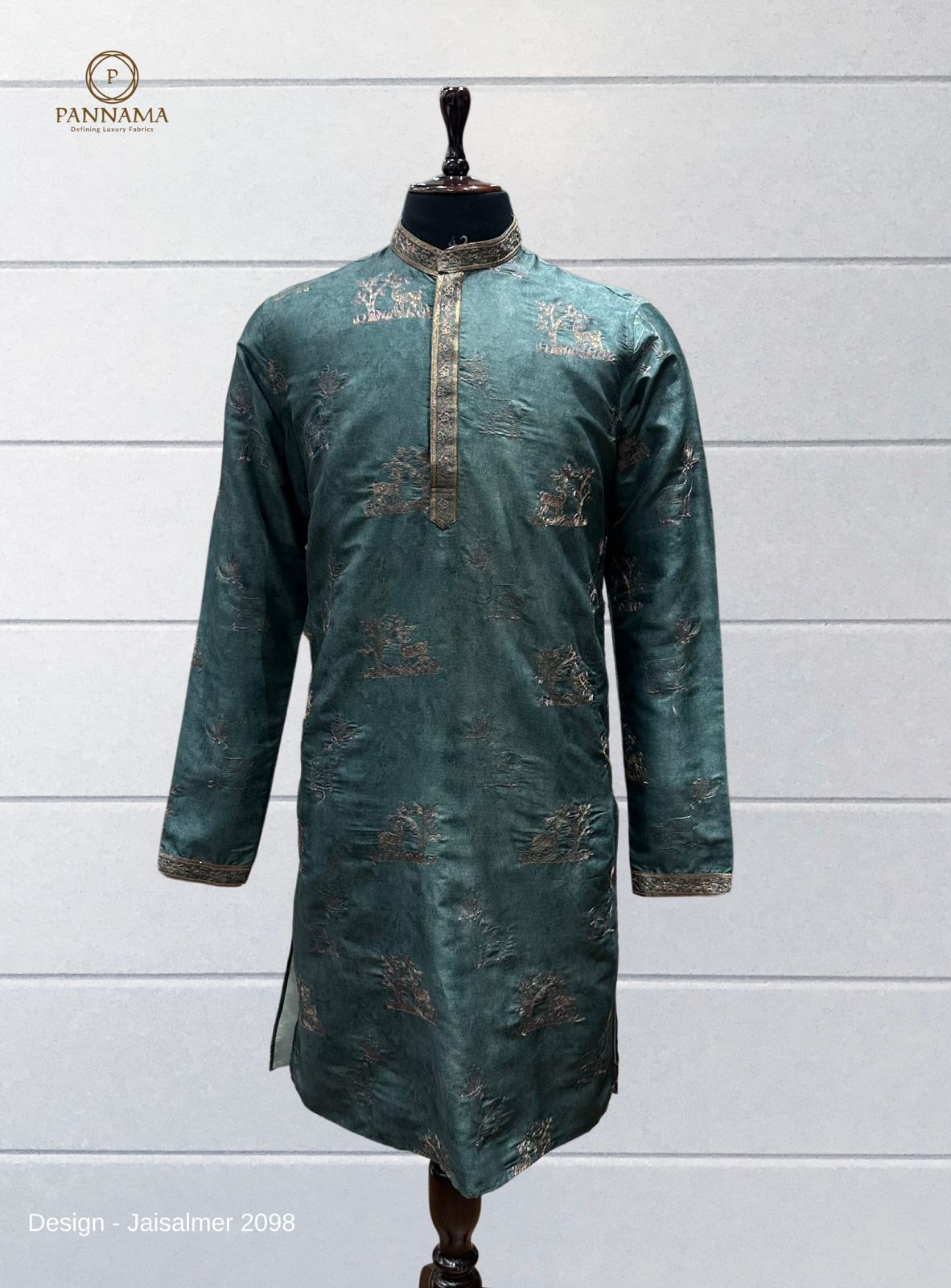 PANNAMA MEN'S MICROFIBRE EMBROIRED KURTA UNSTITCHED FABRIC (GREEN) WH369