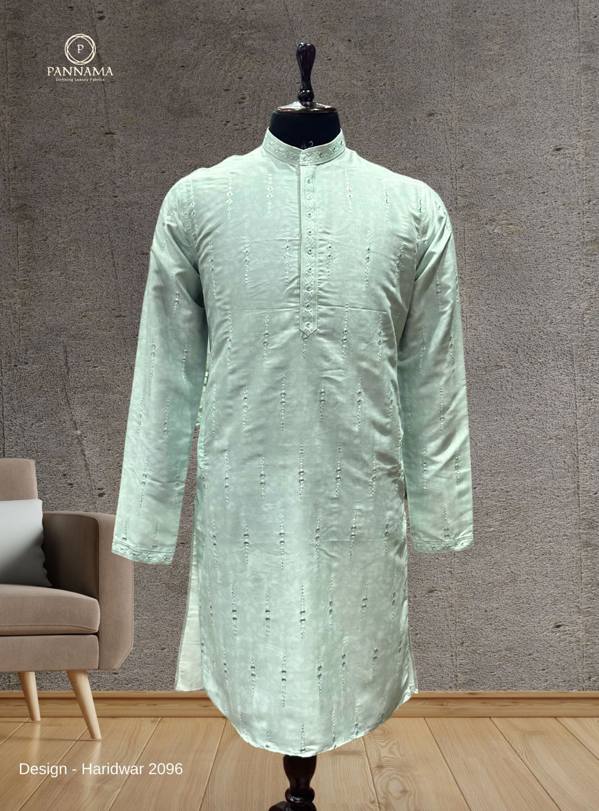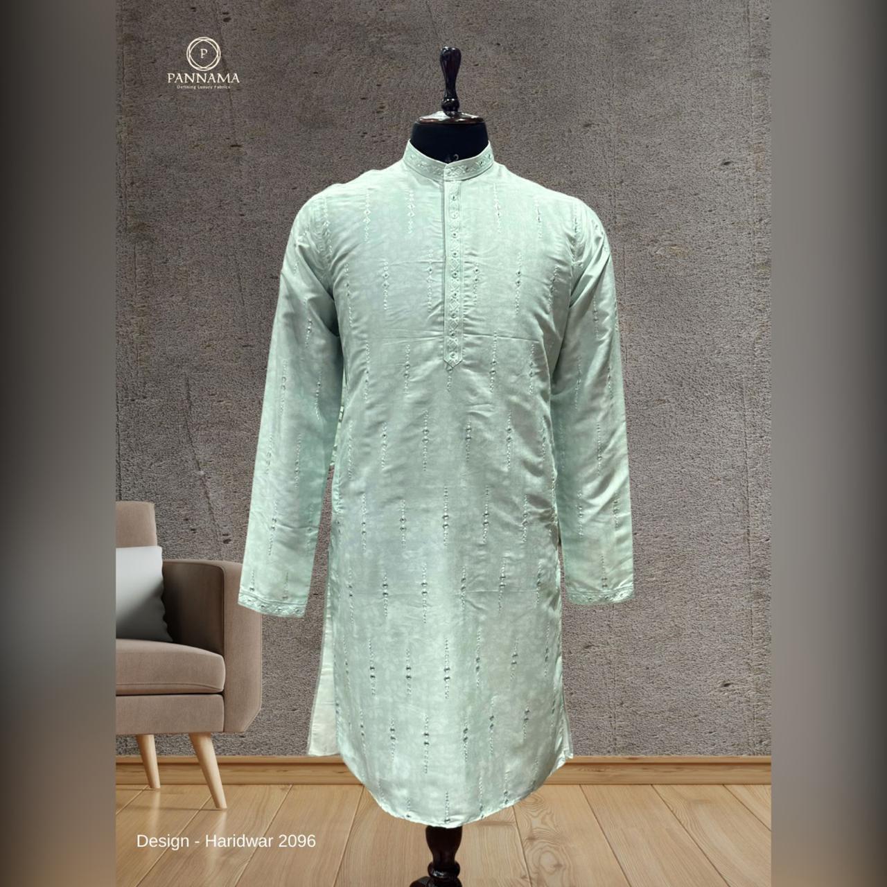 PANNAMA MEN'S MICROFIBRE EMBROIRED KURTA UNSTITCHED FABRIC (GREEN) WH372