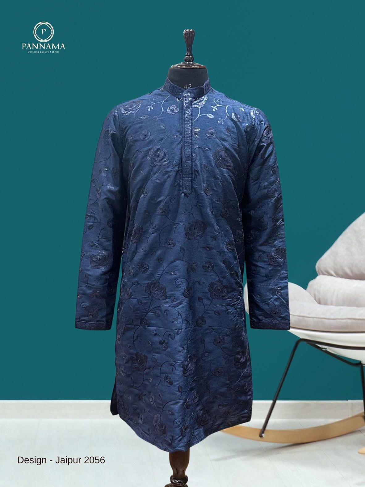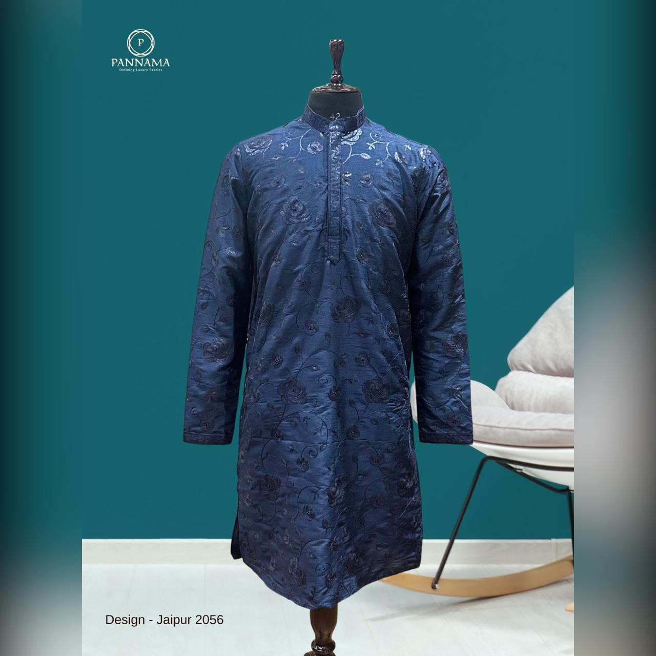 PANNAMA MEN'S MICROFIBRE EMBROIRED KURTA UNSTITCHED FABRIC (NAVY) WH356