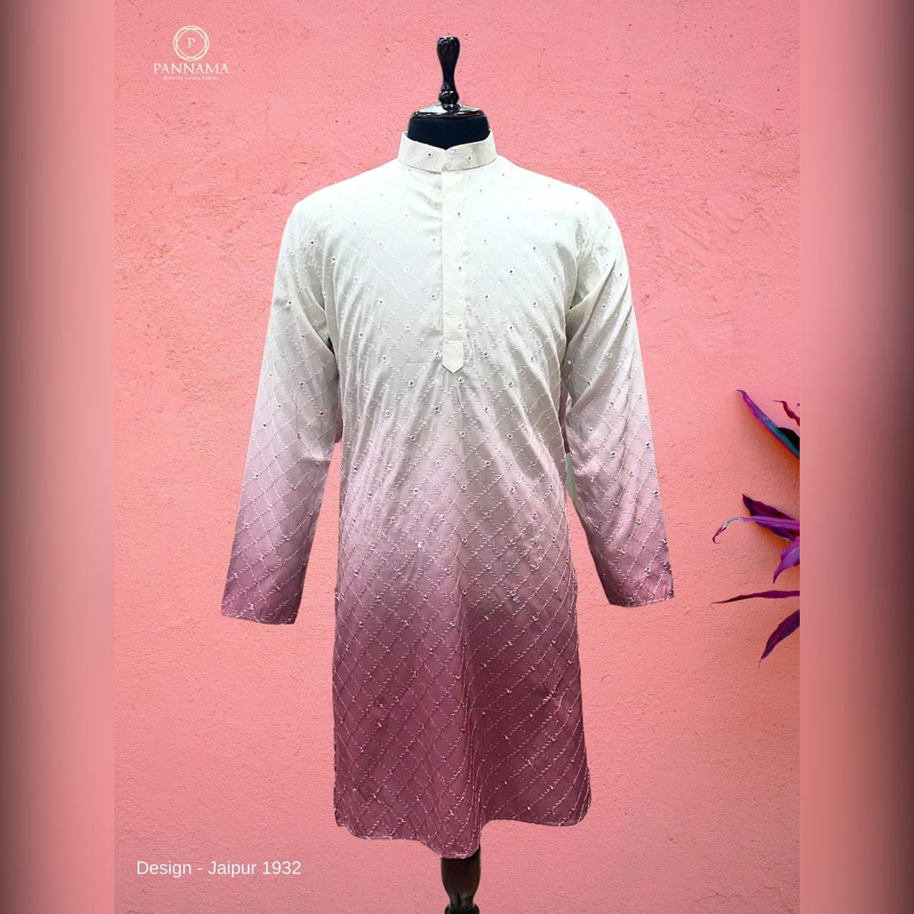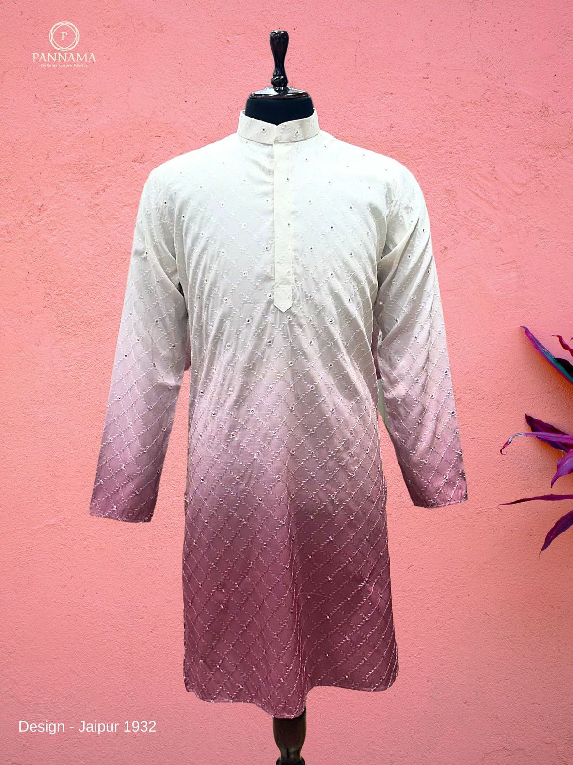 PANNAMA MEN'S MICROFIBRE EMBROIRED KURTA UNSTITCHED FABRIC (ONION) WH360
