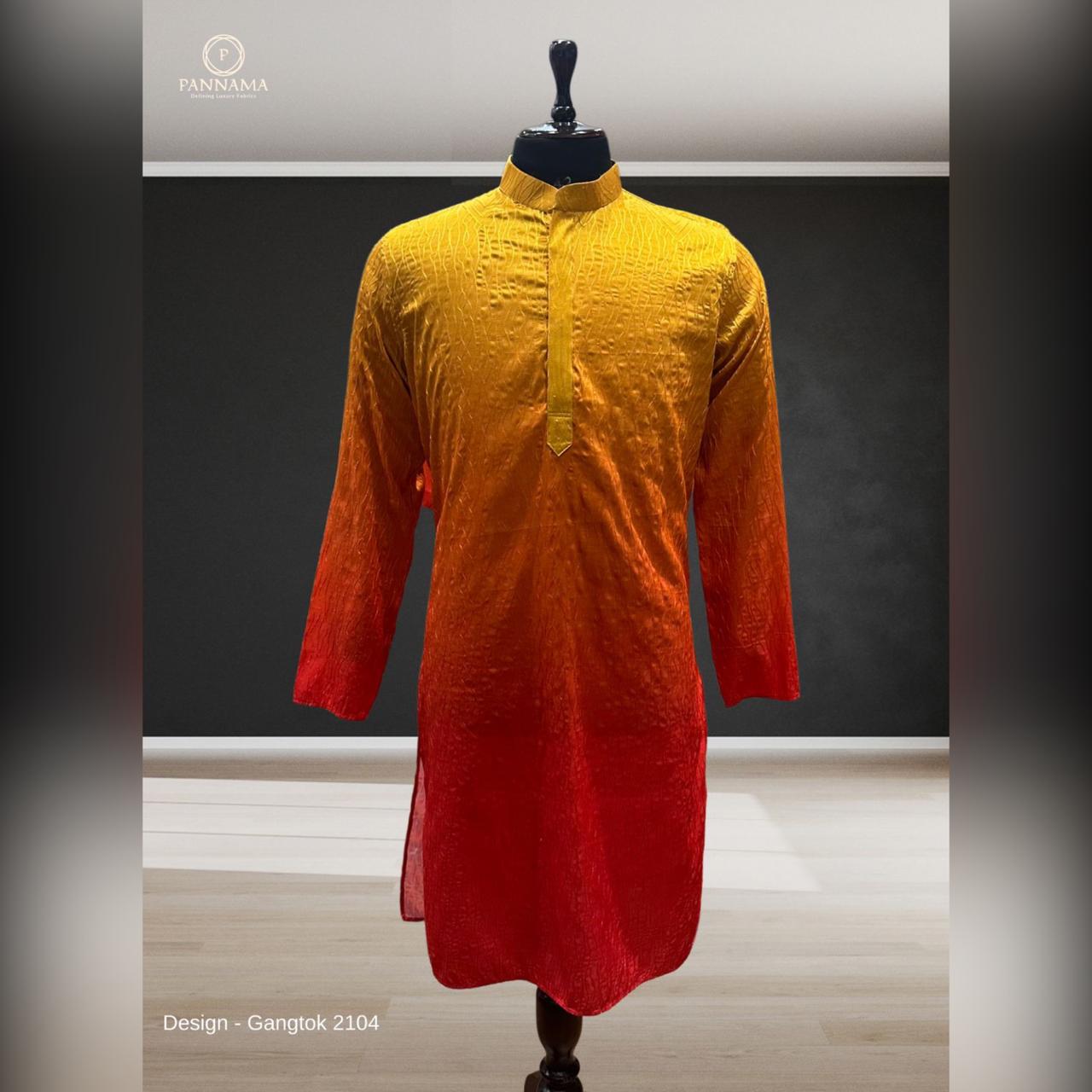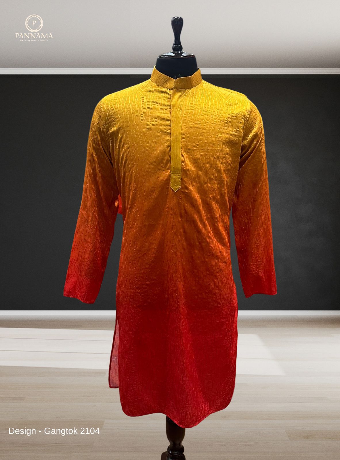 PANNAMA MEN'S MICROFIBRE EMBROIRED KURTA UNSTITCHED FABRIC (ORANGE) WH377